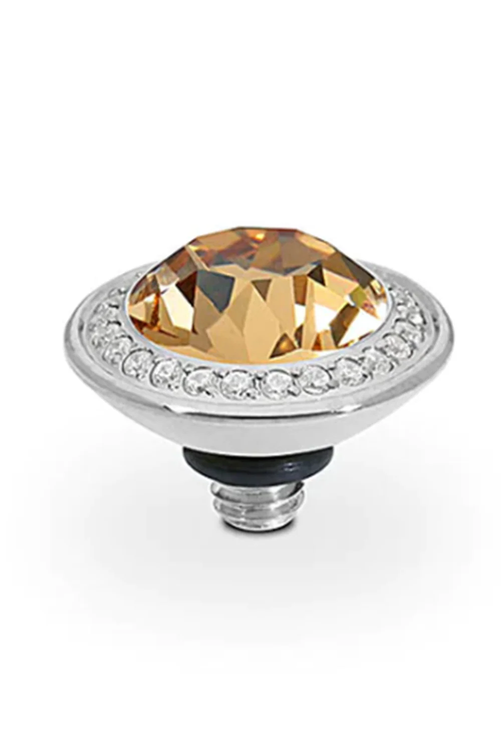Handworked stainless steel with a European Crystal of your choice. This interchangeable top is compatible with any interchangeable base.
